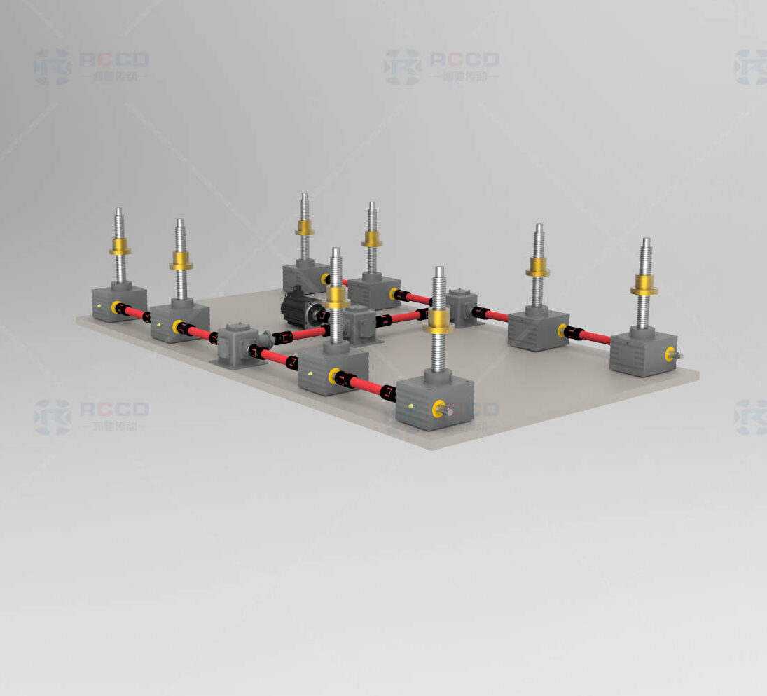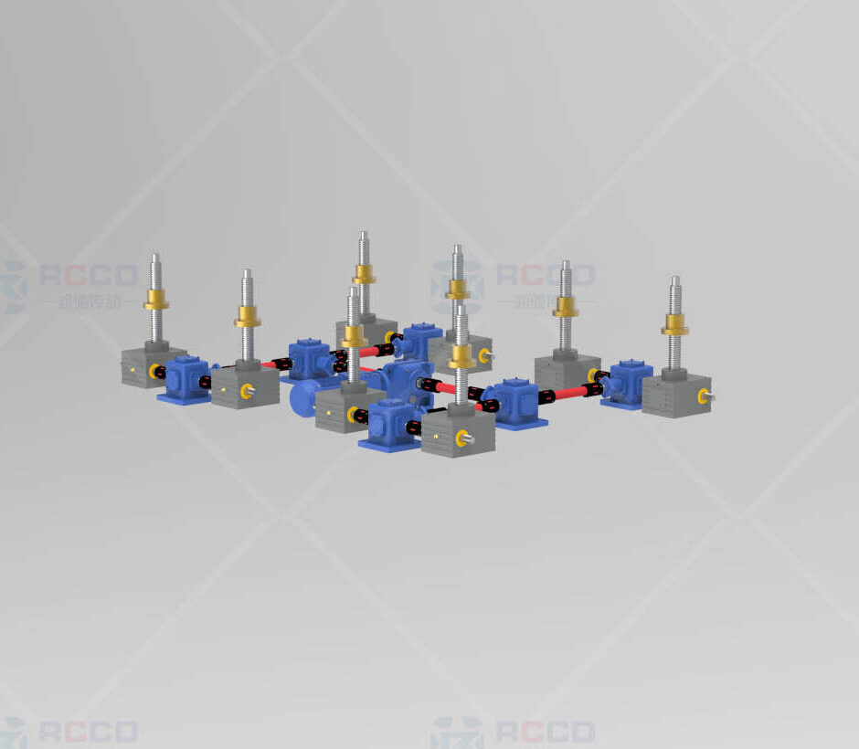 SGA 螺旋升降机八台联动款,核心为精密梯形丝杆副 + 高精度蜗轮蜗杆副,采用单电机 + 刚性联动轴设计,搭配 PLC 同步控制系统与动态同步算法,协同误差≤0.05mm。球墨铸铁壳体强度优异,自带可靠自锁功能,负载分配均匀,适配超重型、长跨度工况。模块化布局安装便捷,运行低噪稳定,广泛应用于自动化产线、重型平台调平等场景,维护简单成本低。