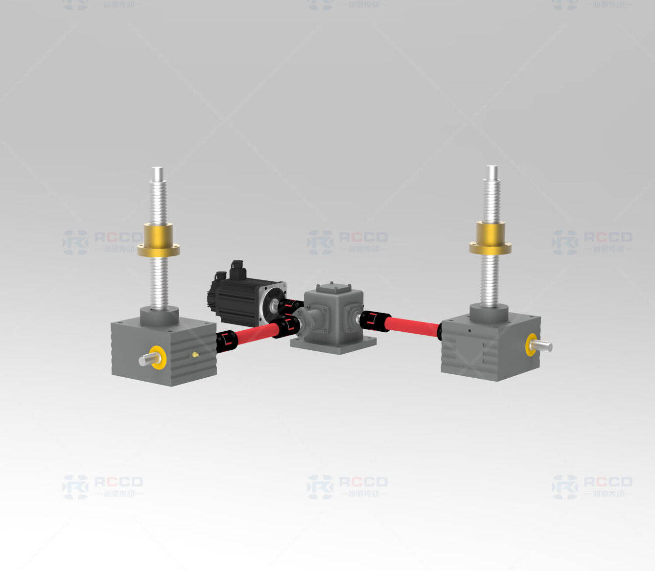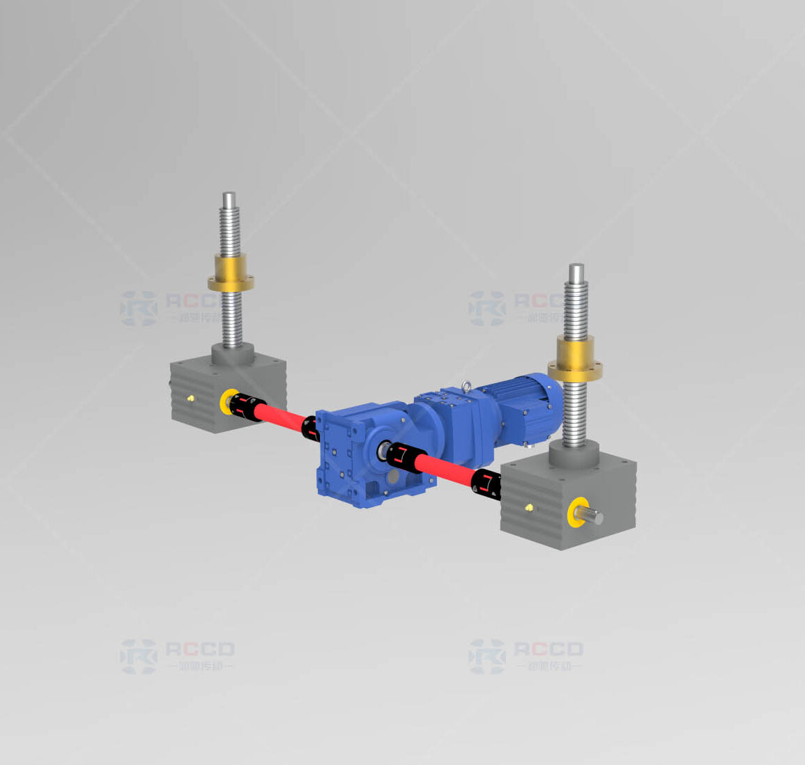 SGA 螺旋升降机两台联动款,核心为精密梯形丝杆副 + 高精度蜗轮蜗杆副,支持 I 型或 T 型布局,通过单电机 + 刚性传动轴联动实现同步运行。同步误差控制在毫米级,负载分配均匀,可抵消侧向力,适配长跨度重载工况。球墨铸铁壳体强度高,自带可靠自锁功能,安装便捷,广泛应用于光伏设备、仓储平台等领域,运行稳定且维护简单。